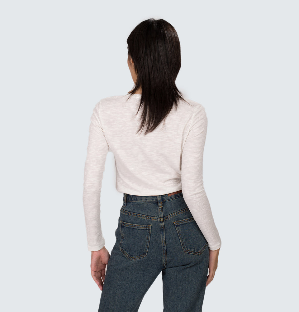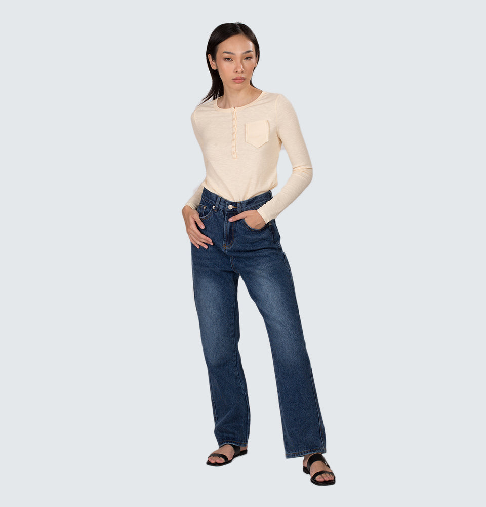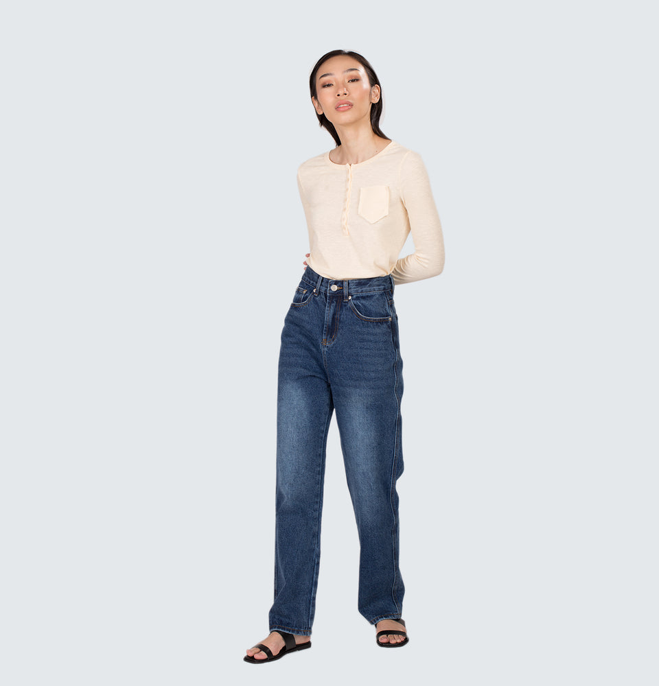 Description: High-waist jeans with a wide-leg design, five pockets zip fly and metal top button fastening.