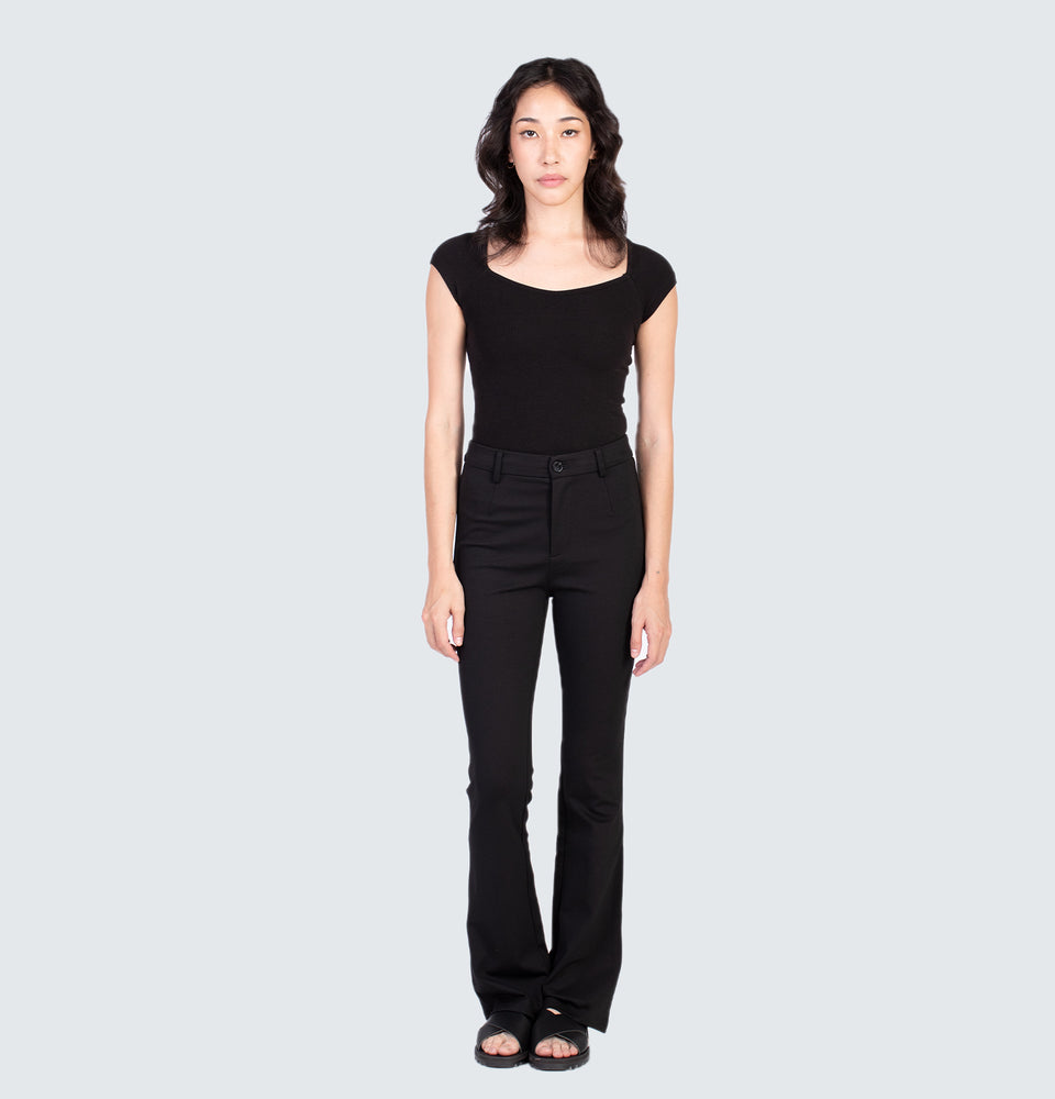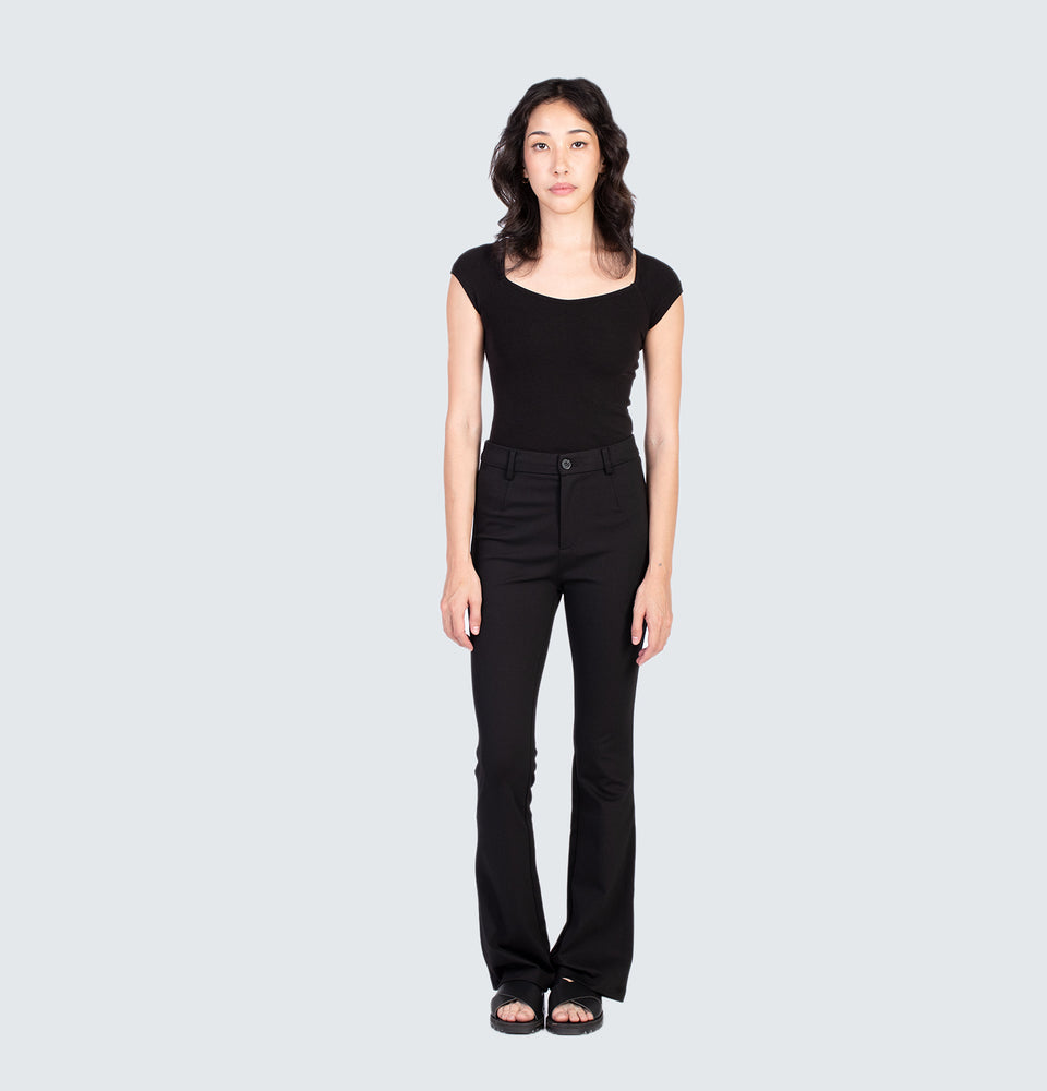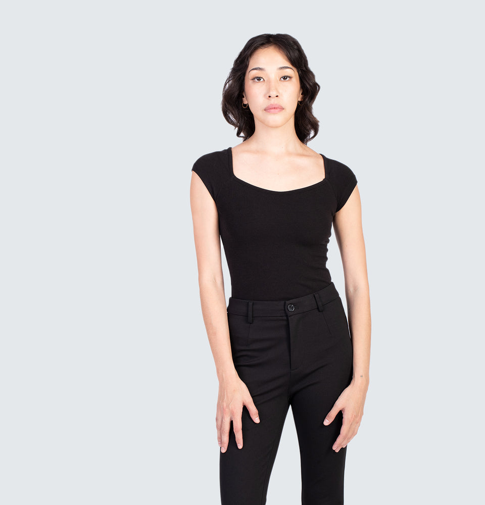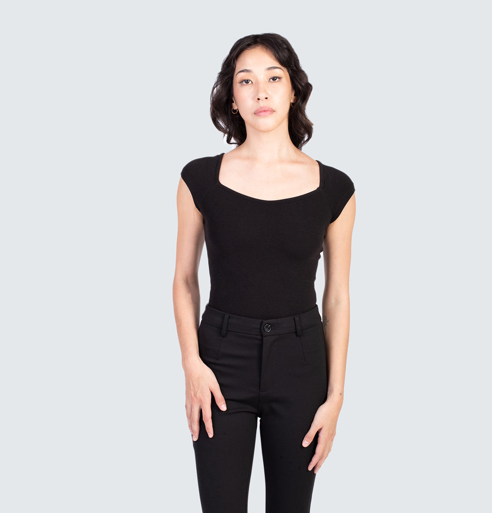 Description: Fitted crop top with a square neckline and a very short sleeves.