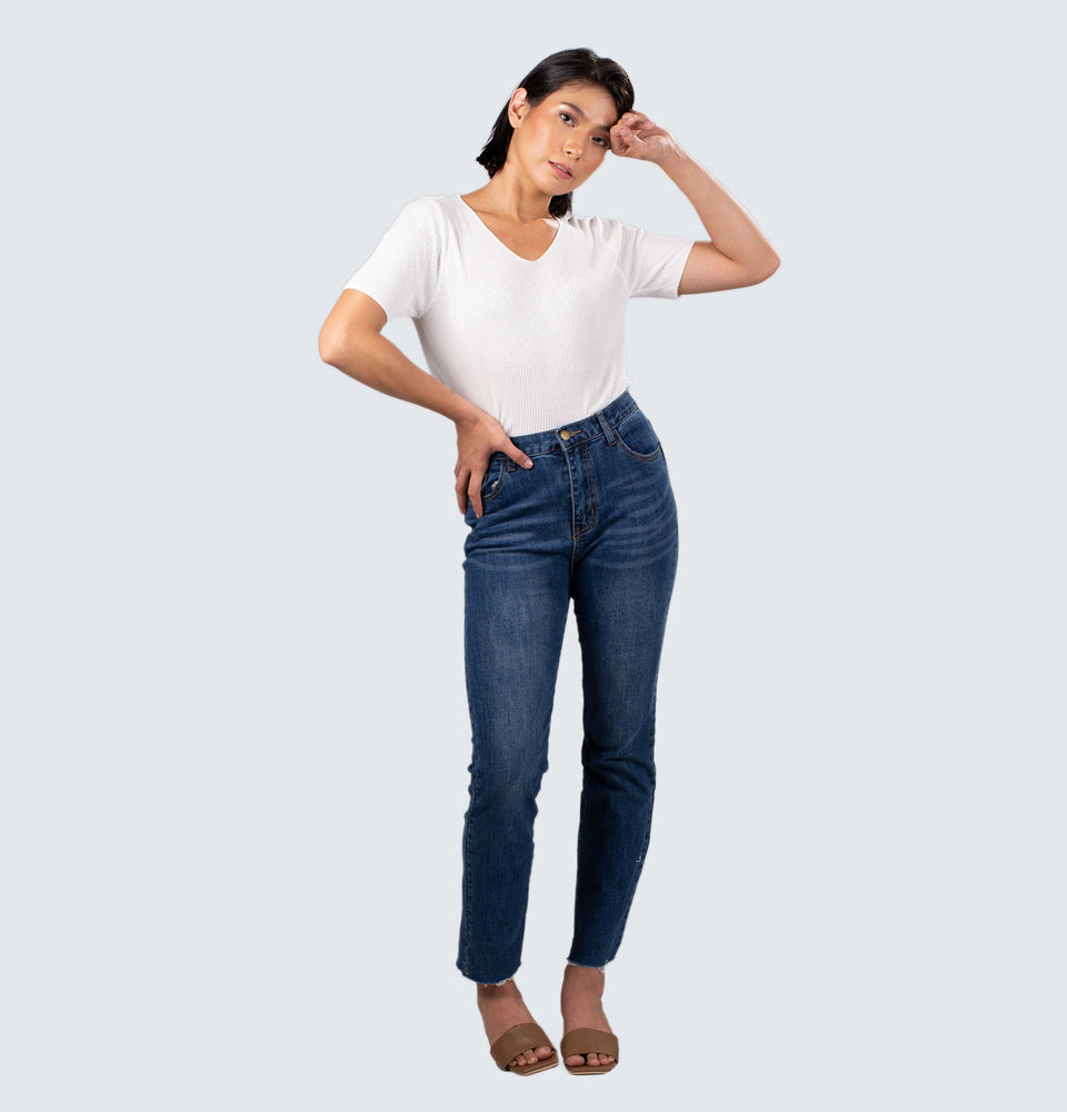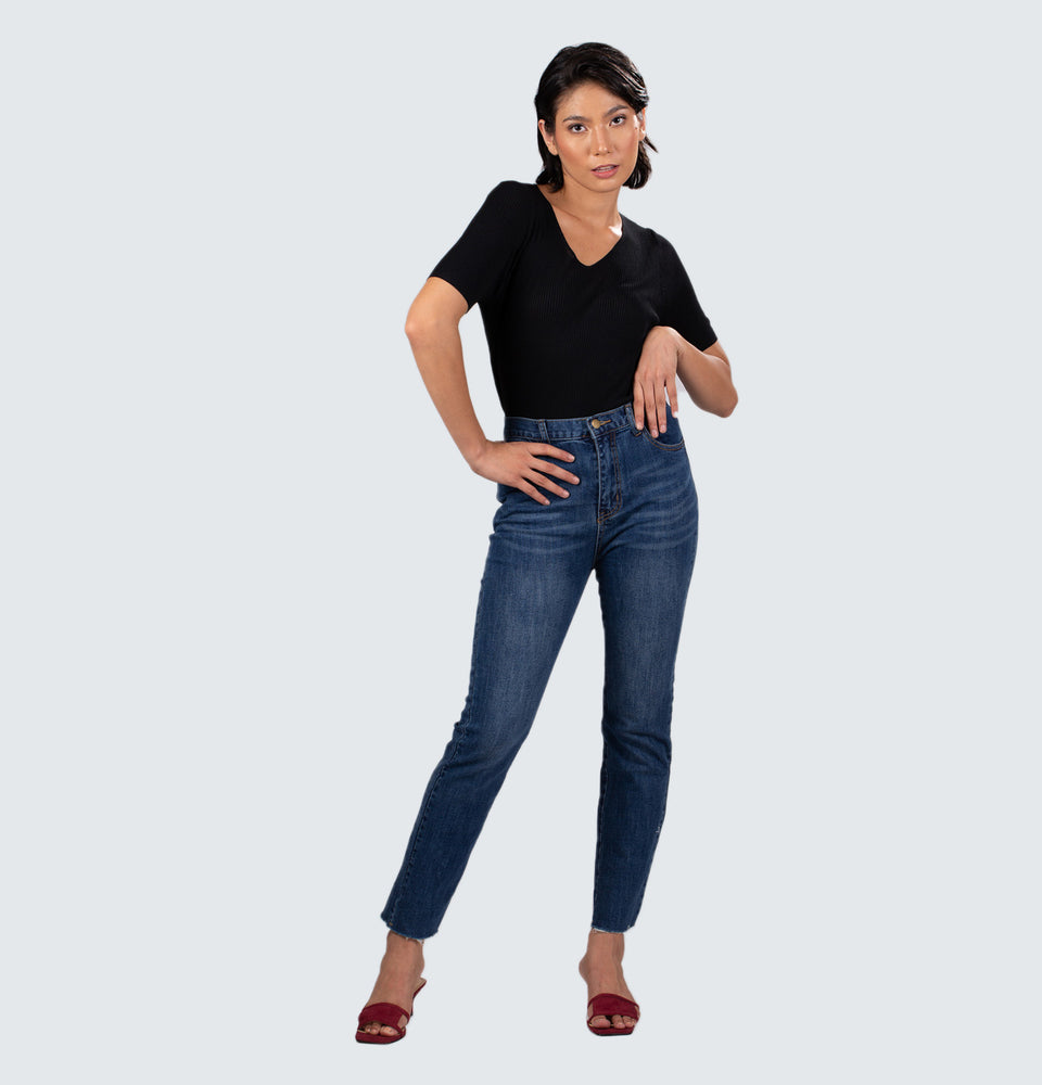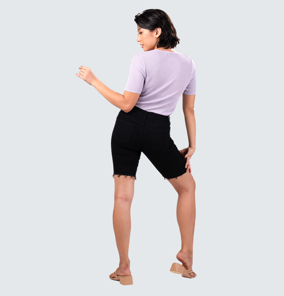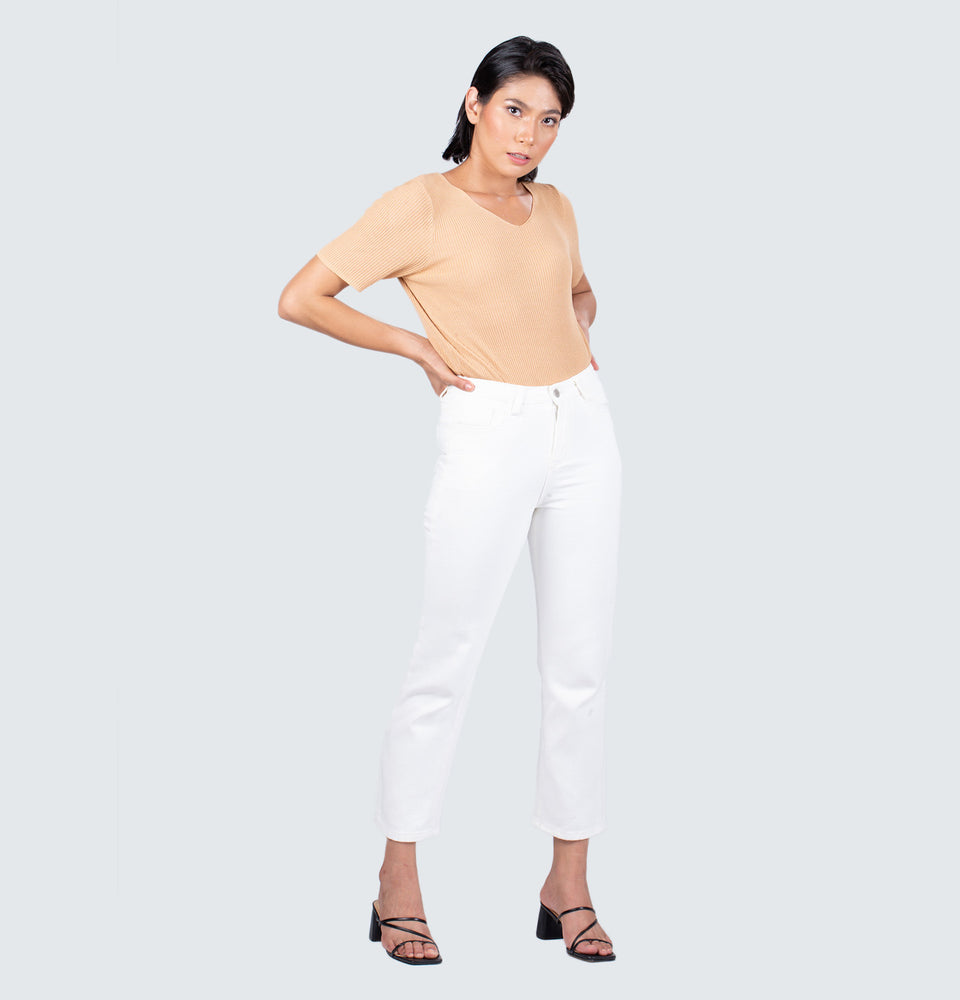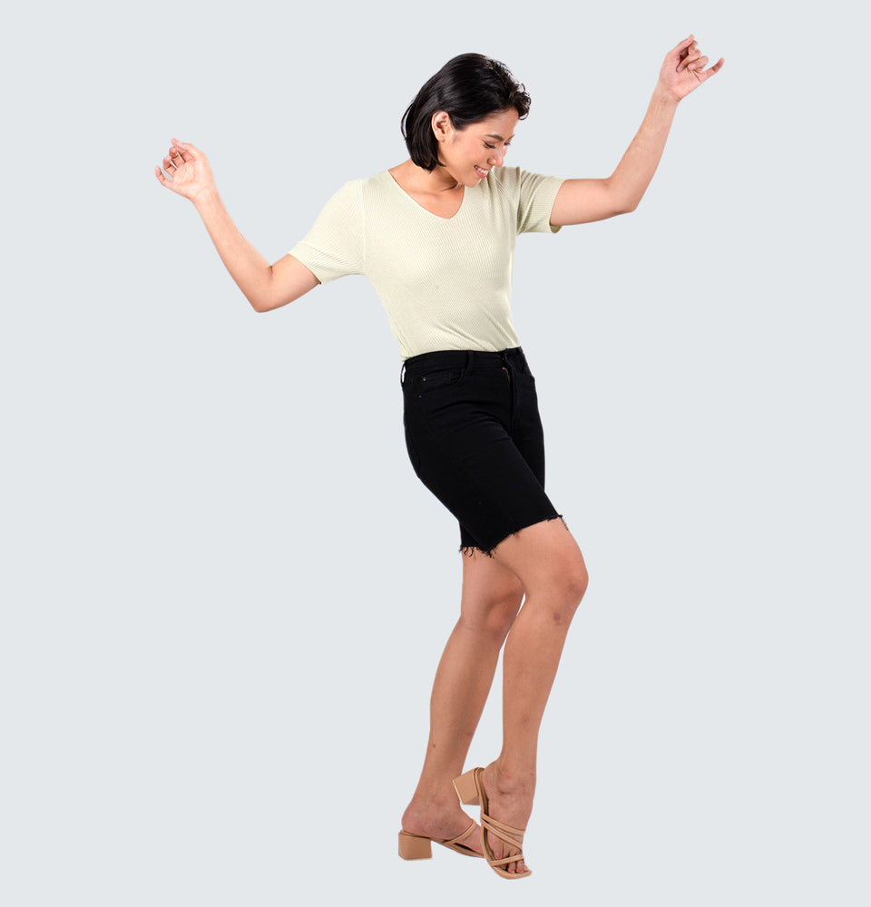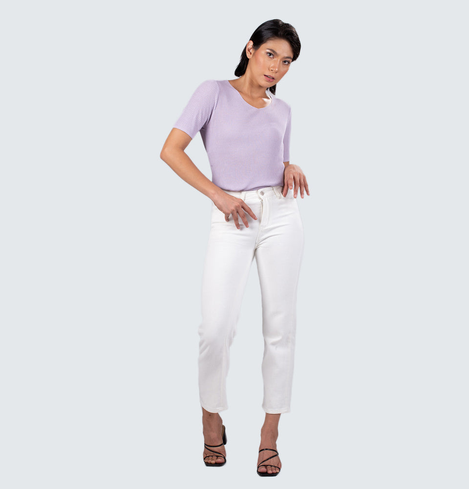 Description: V-neck T-shirt with short sleeves and ribbed trims.