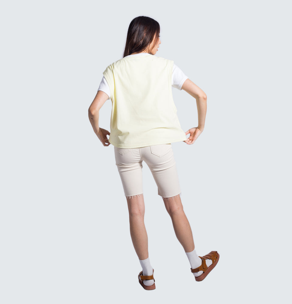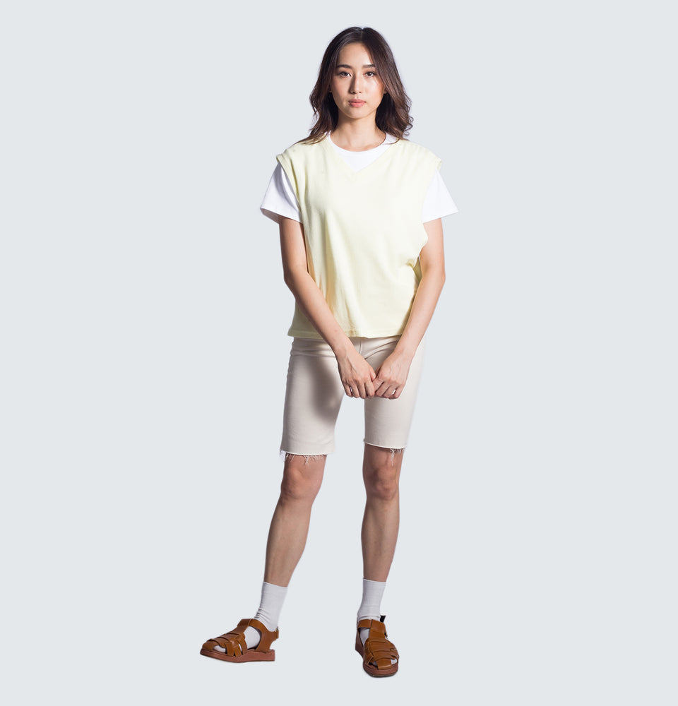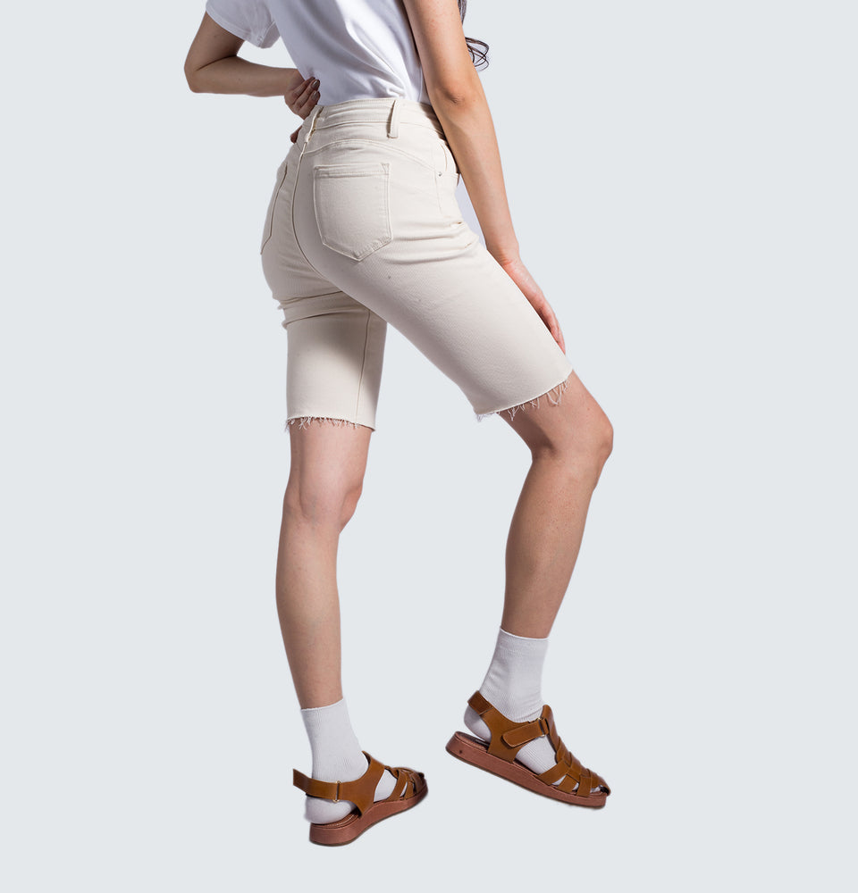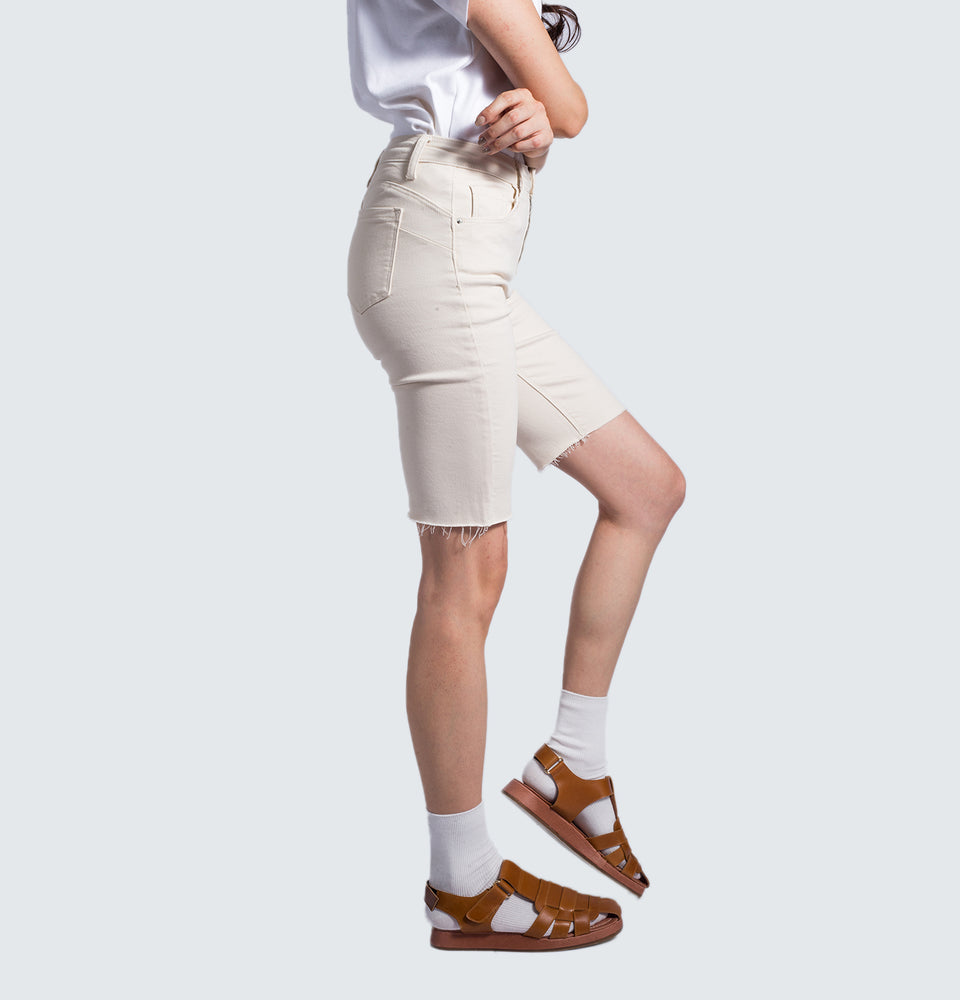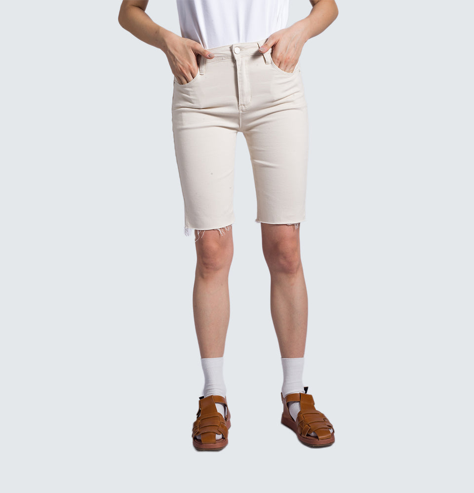 Raw hem and seamless trims. Front zip fly and metal top button fastening.