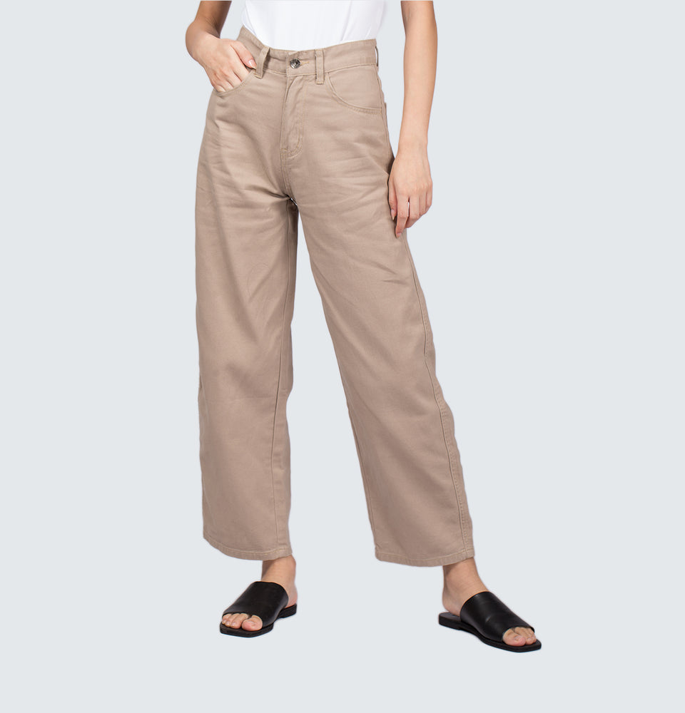 Description: High-rise jeans with front pockets and back patch pockets. Visible seams. Zip fly and top button fastening.
