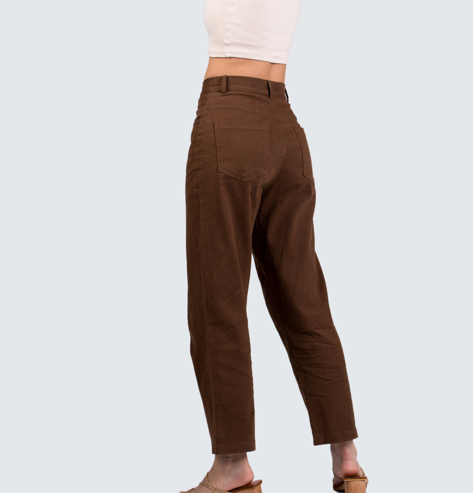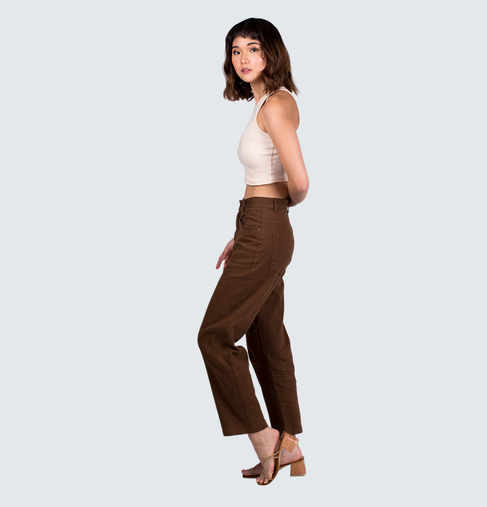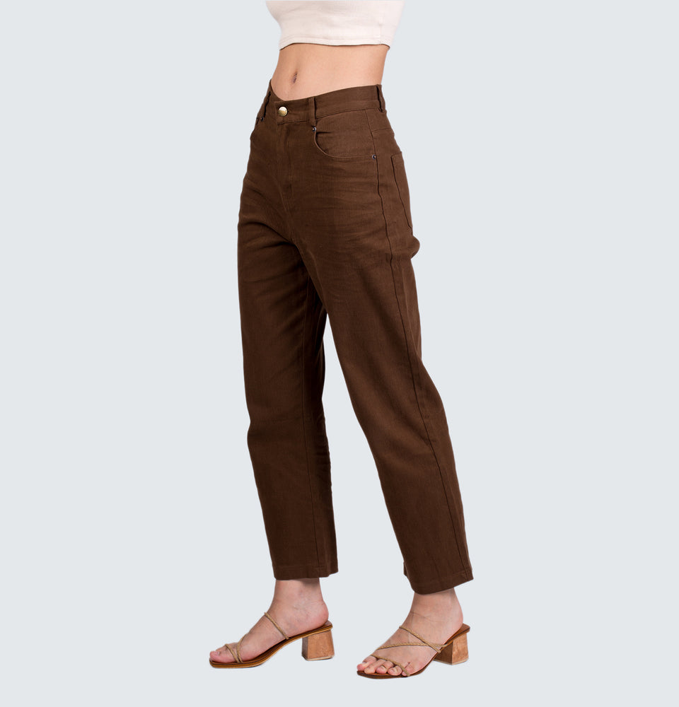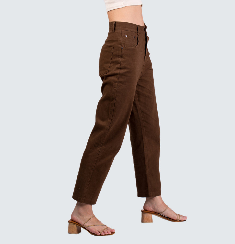 Description: High-rise jeans with a five pocket design. Zip fly and metal top button fastening