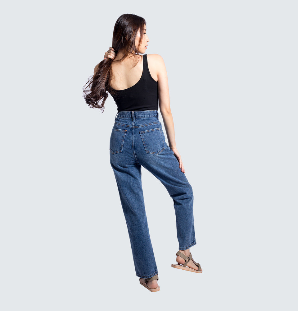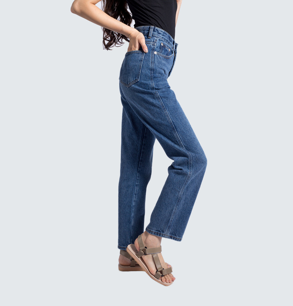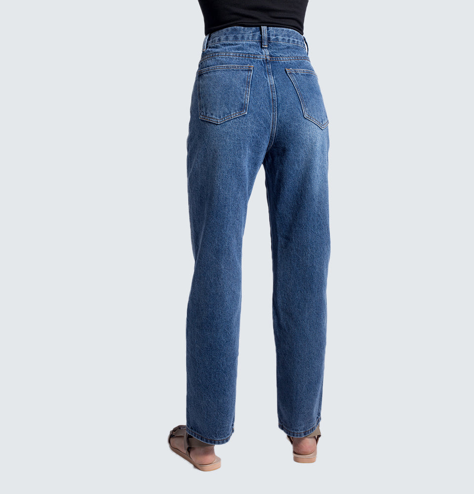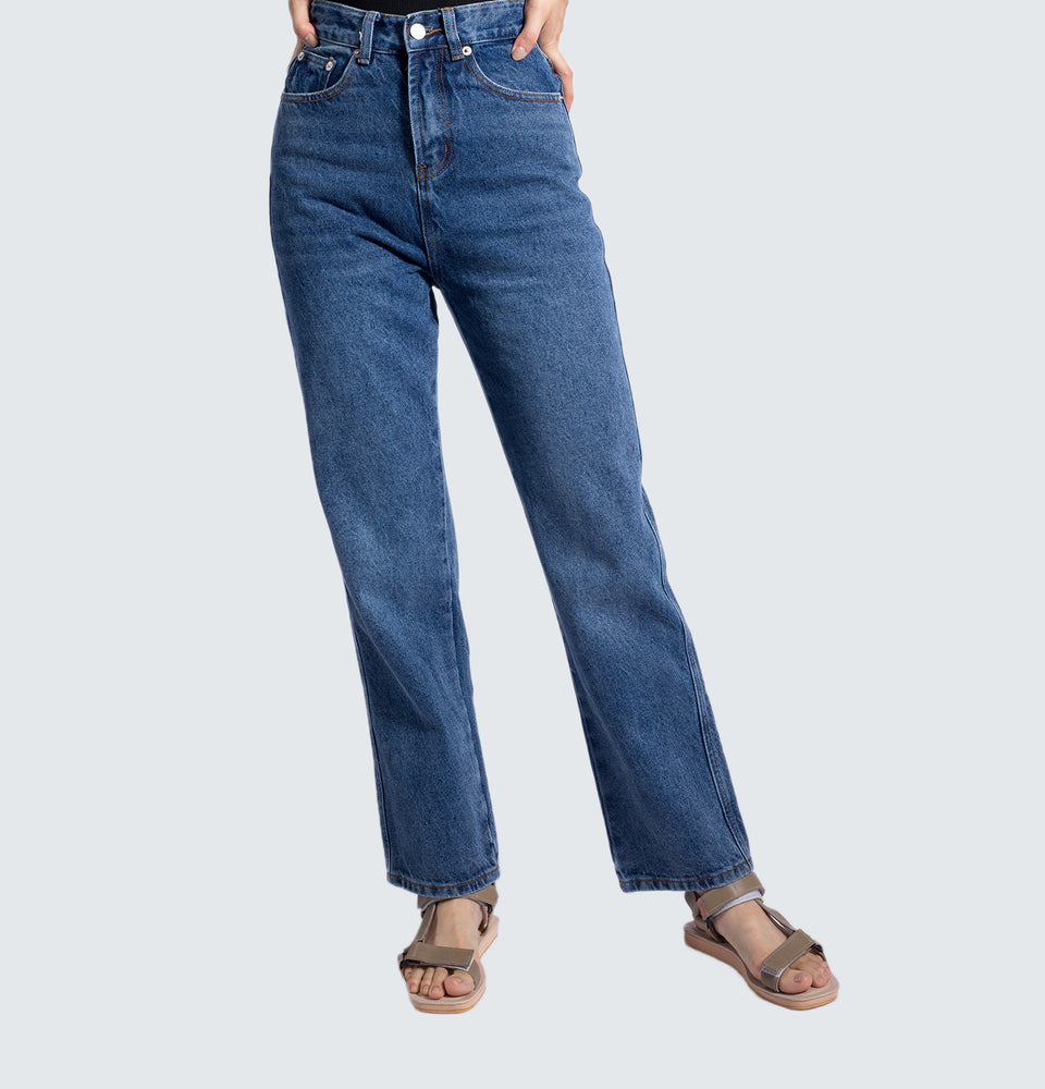 Description: Faded high waist jeans with a straight-leg fit and five-pocket design. Front metal button fastening.