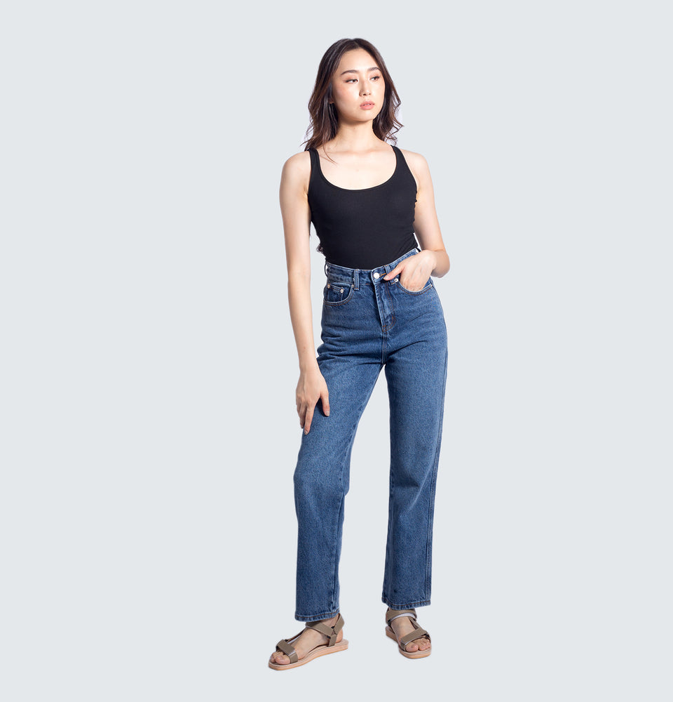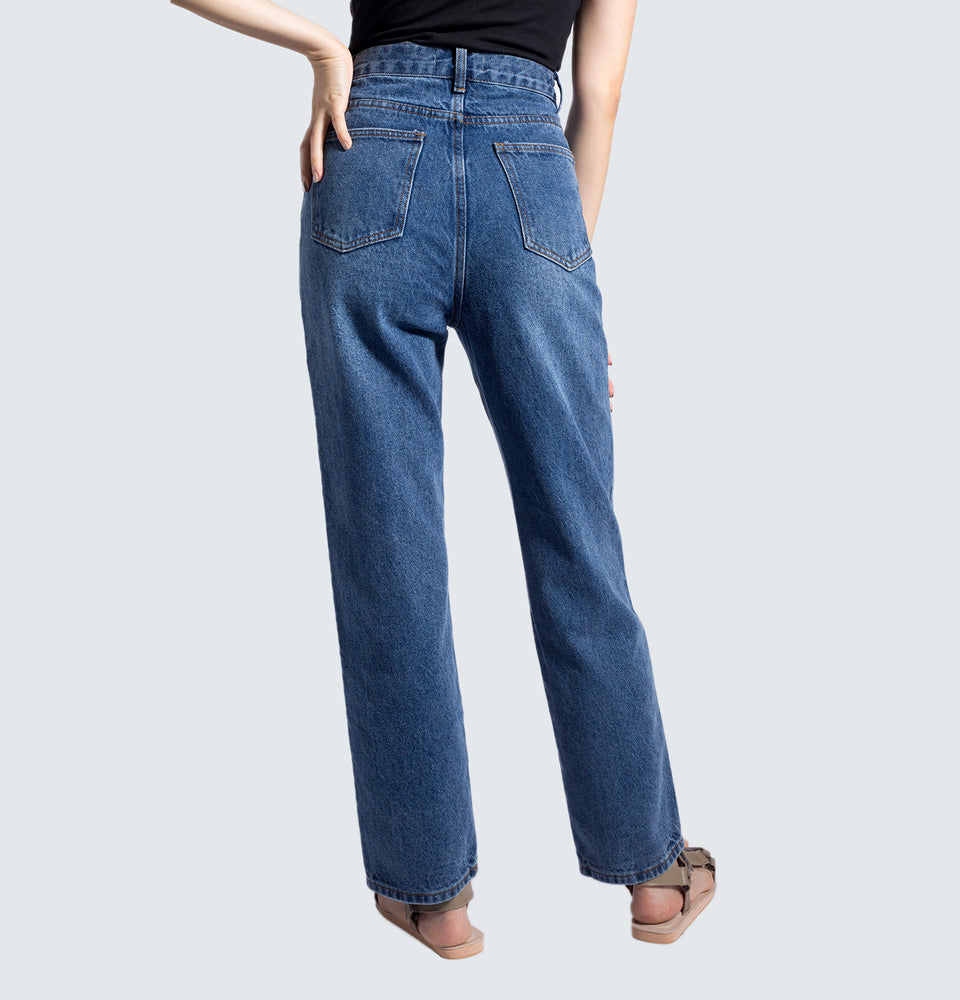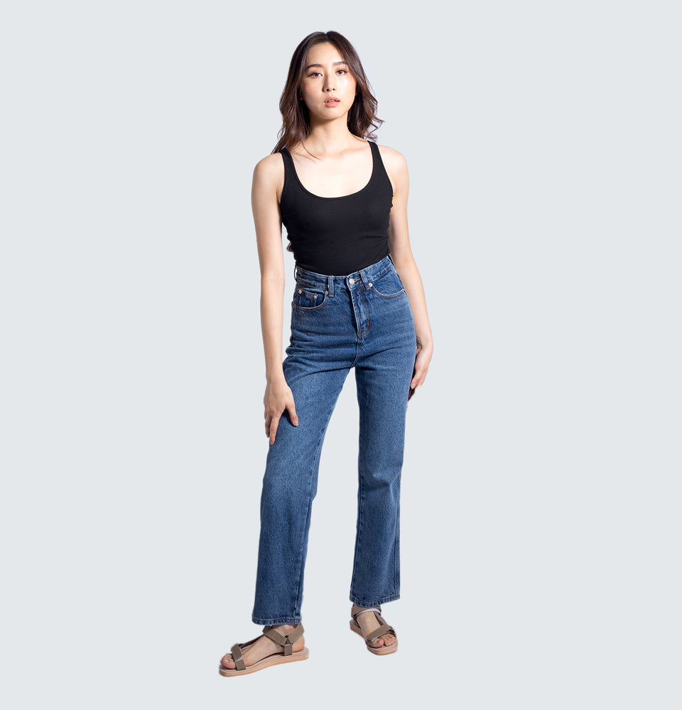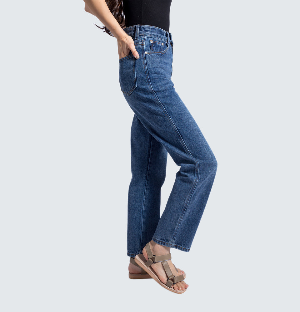 Description: Faded high waist jeans with a straight-leg fit and five-pocket design. Front metal button fastening.