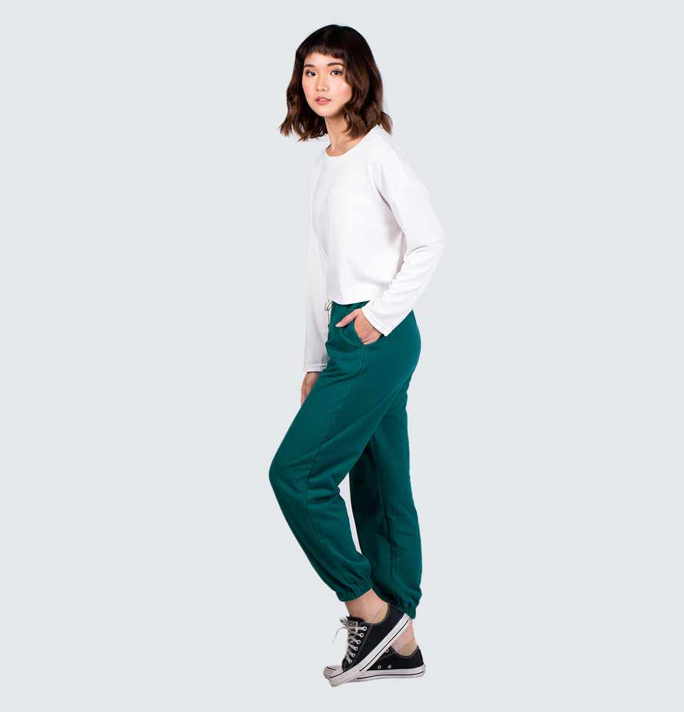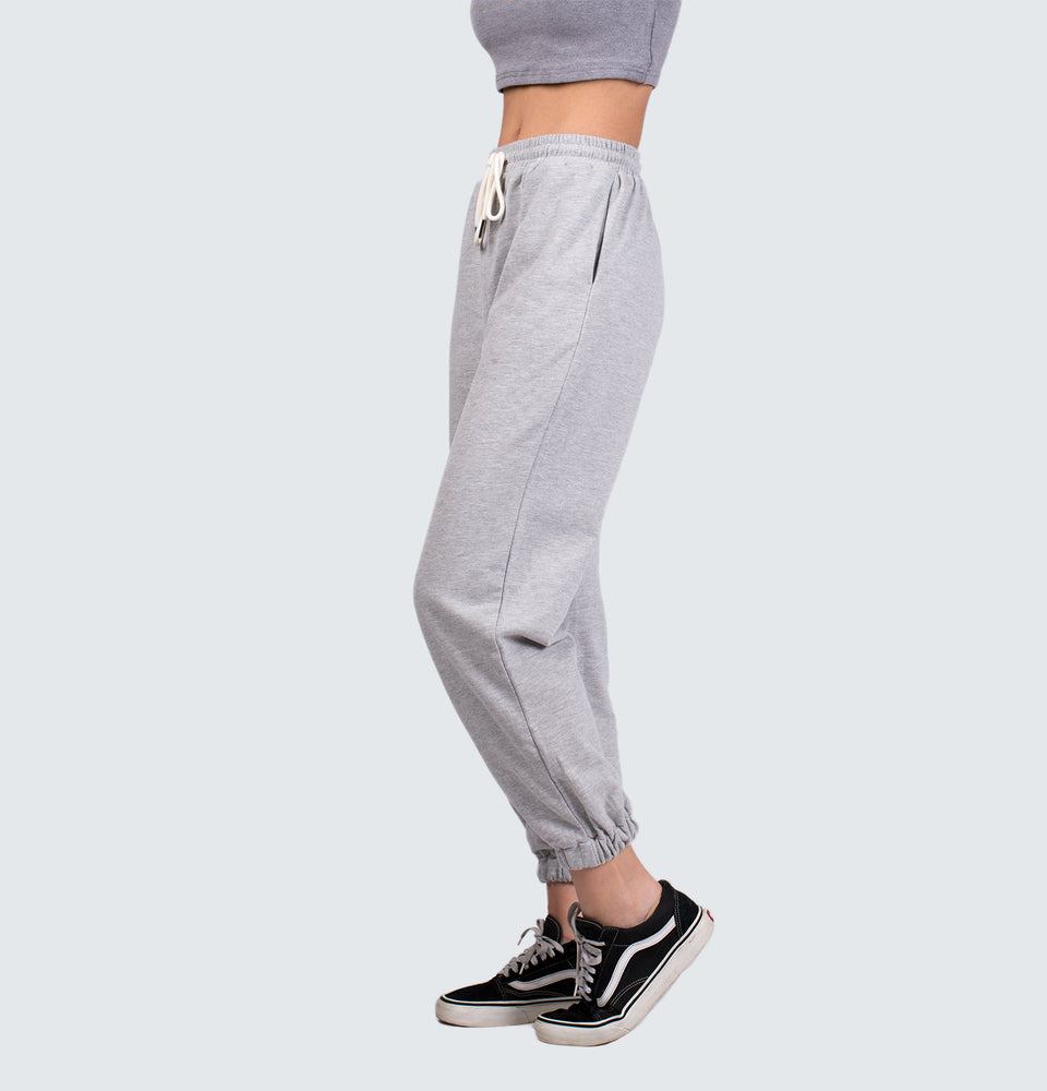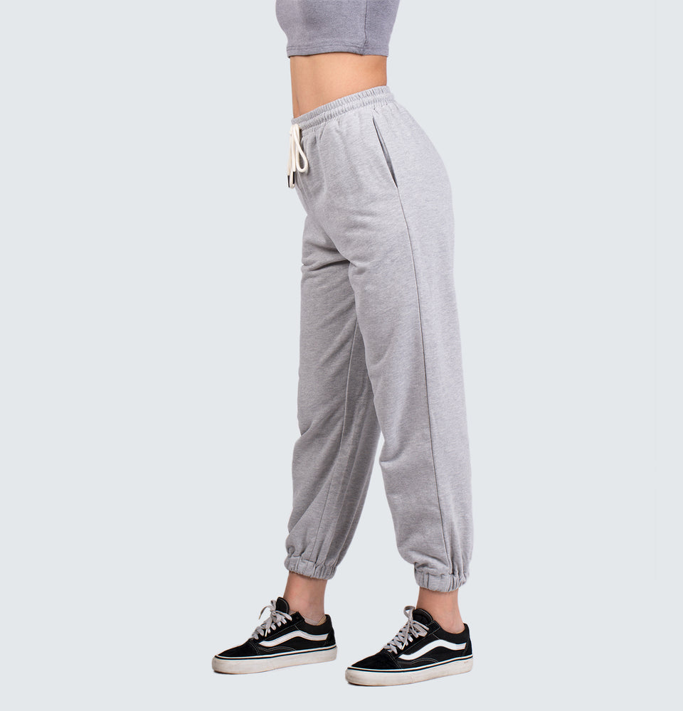 Description: High-waist trousers featuring an elastic waistband, side pockets and elastic cuffed.