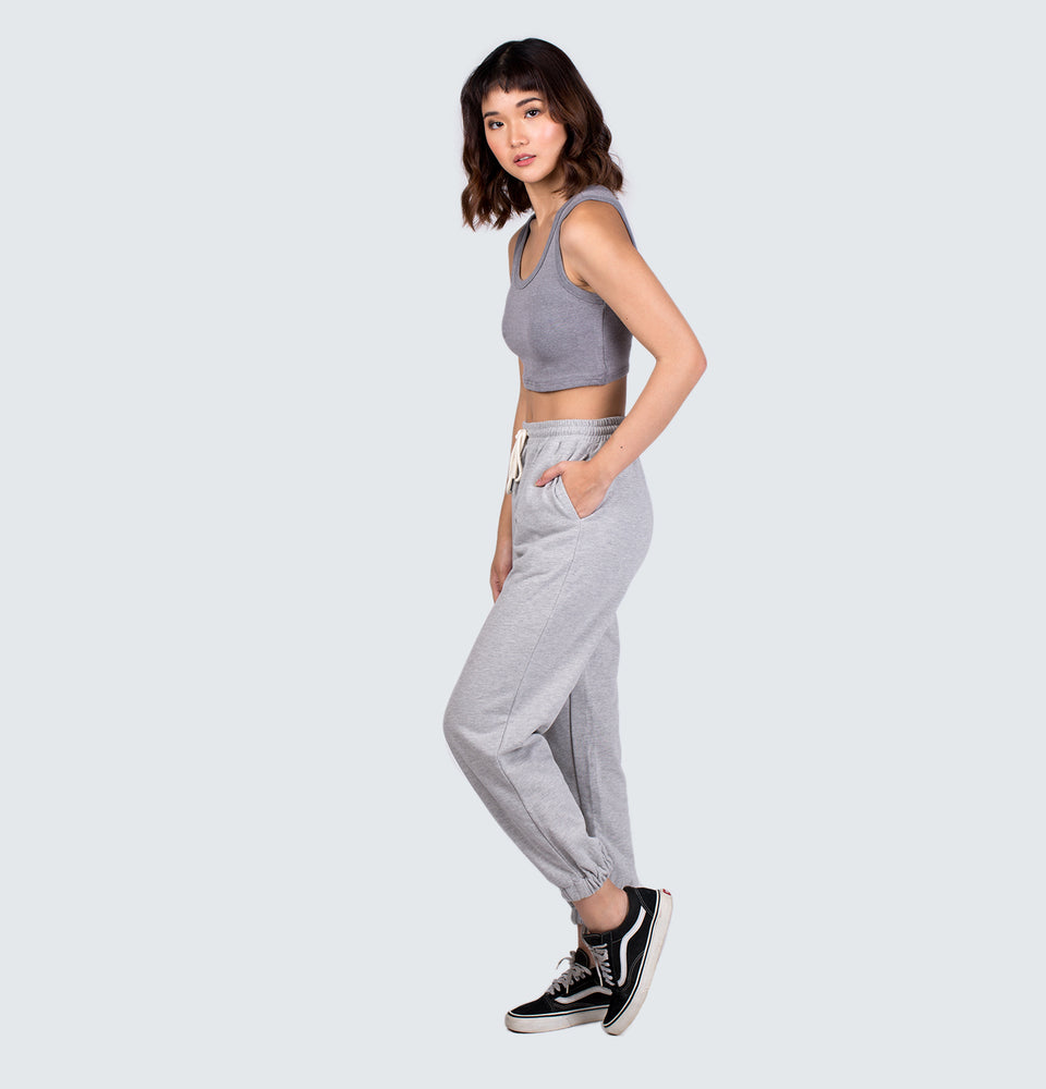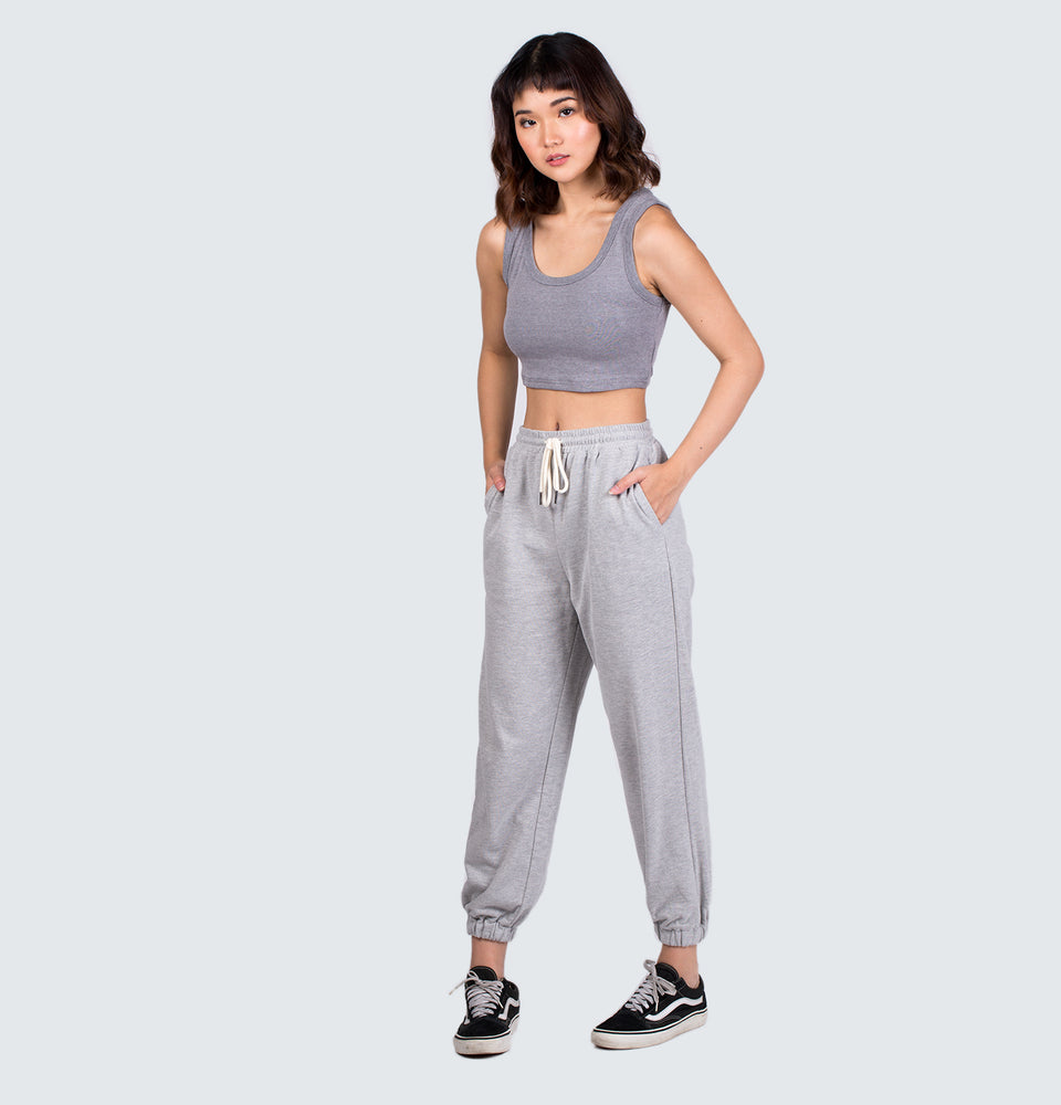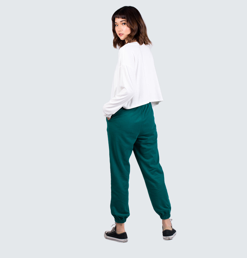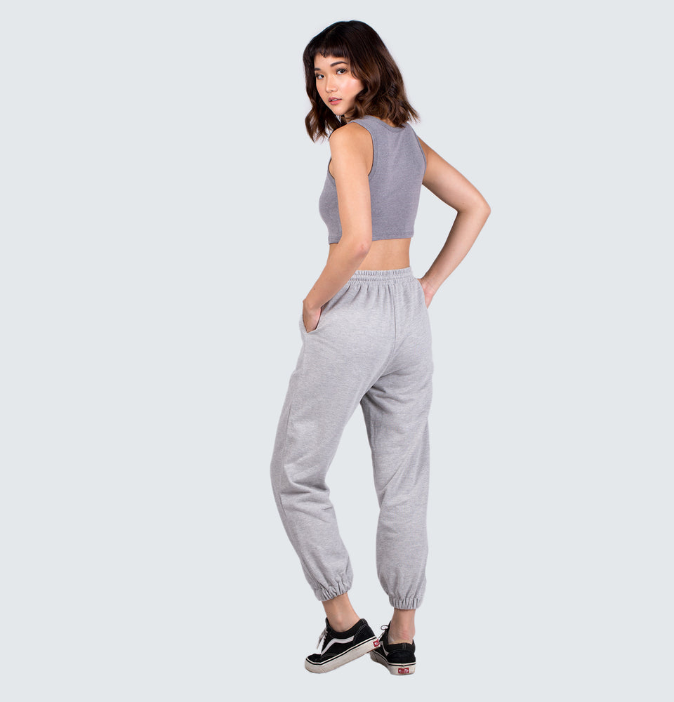 Description: High-waist trousers featuring an elastic waistband, side pockets and elastic cuffed.